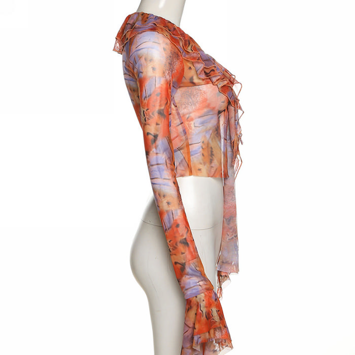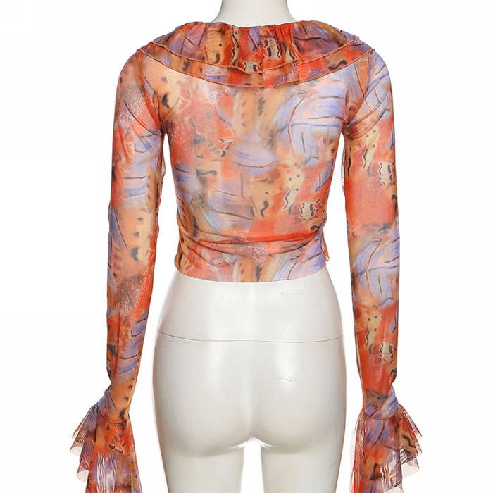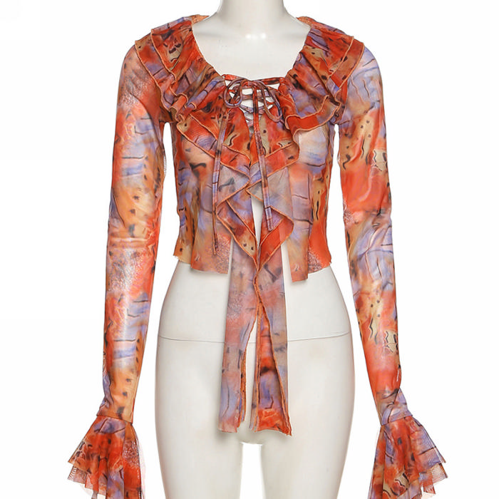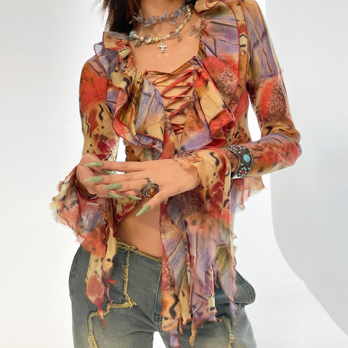 (Real Image)2022 Styles Women Fashion Summer INS Styles Floral Lace Up Long Sleeve BlousesSKU: #CF49589-1