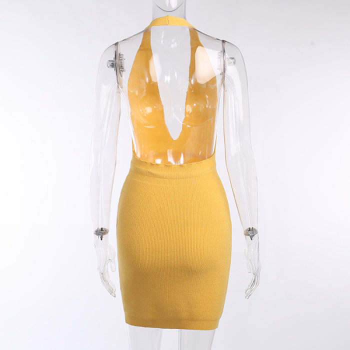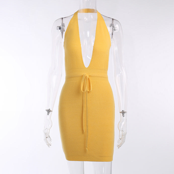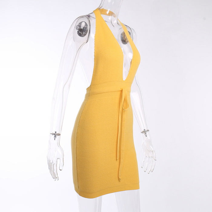 (Real Image)2022 Styles Women Fashion Summer INS Styles Halter Deep V Neck Mini DressSKU: #XF92465-1