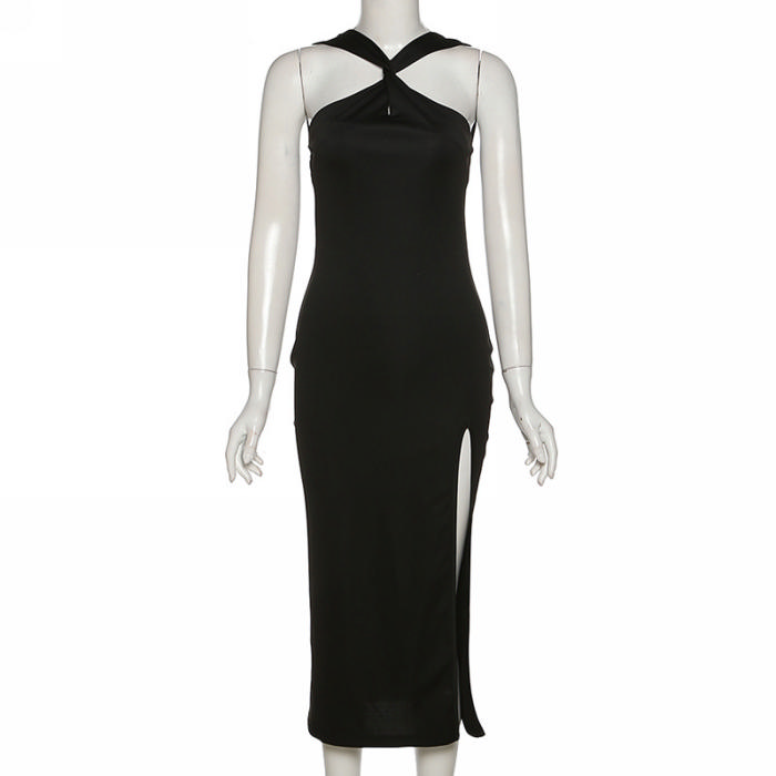 (Real Image)2022 Styles Women Fashion Summer INS Styles Halter High Split Maxi DressSKU: #CF12290-2