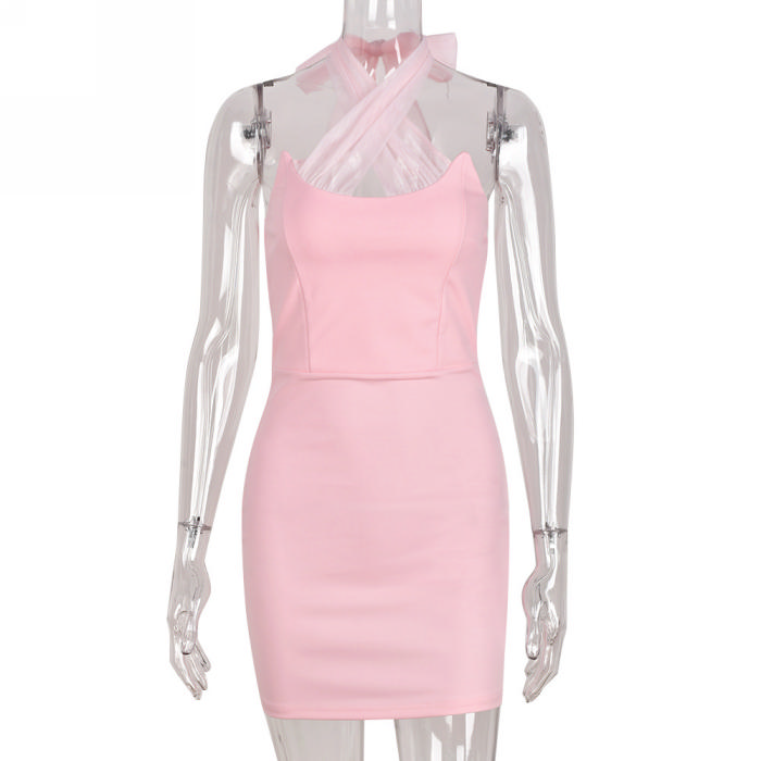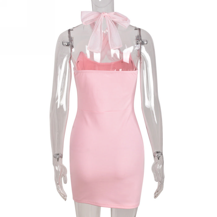 (Real Image)2022 Styles Women Fashion Summer INS Styles Halter Mini DressSKU: #CF59033-1