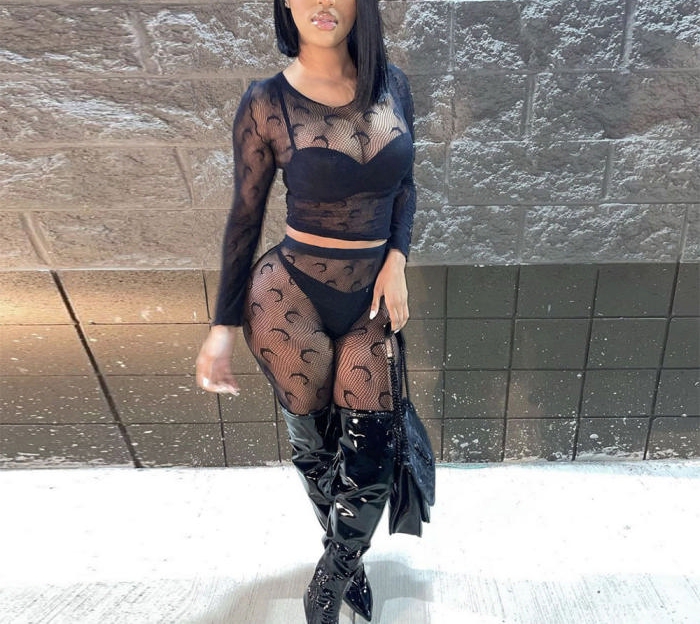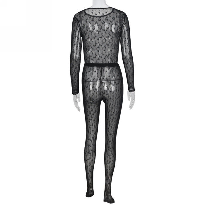 (Real Image)2022 Styles Women Fashion Summer INS Styles Lace Rount Neck Long Sleeve Tops and Long Pants Two Pieces SuitSKU: #CF59035-1
