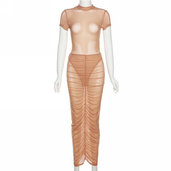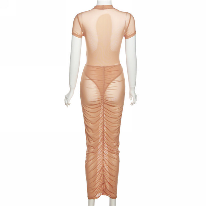(Real Image)2022 Styles Women Fashion Summer INS Styles Mesh Ruffle Maxi DressSKU: #CF48593-1