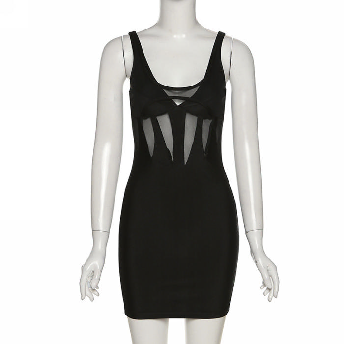 (Real Image)2022 Styles Women Fashion Summer INS Styles Mesh Strap Mini DressSKU: #CF49590-1
