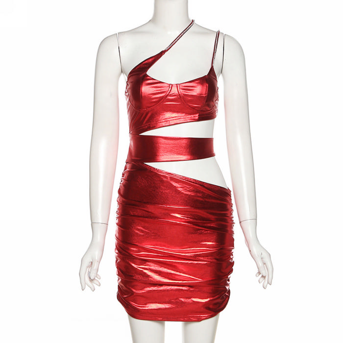 (Real Image)2022 Styles Women Fashion Summer INS Styles PU Cut Out Club DressSKU: #CF12272-1