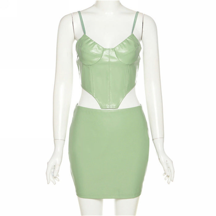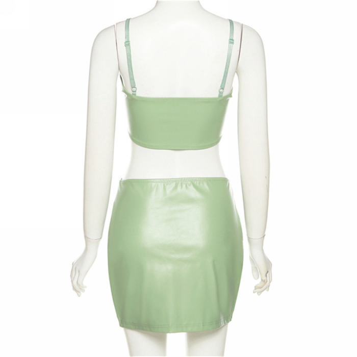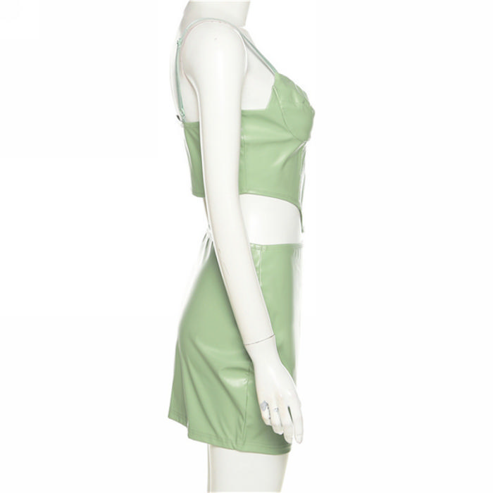 (Real Image)2022 Styles Women Fashion Summer INS Styles PU Two Piece SuitSKU: #CF48580-1