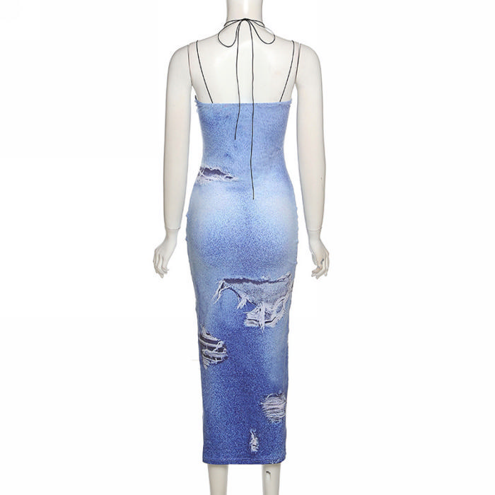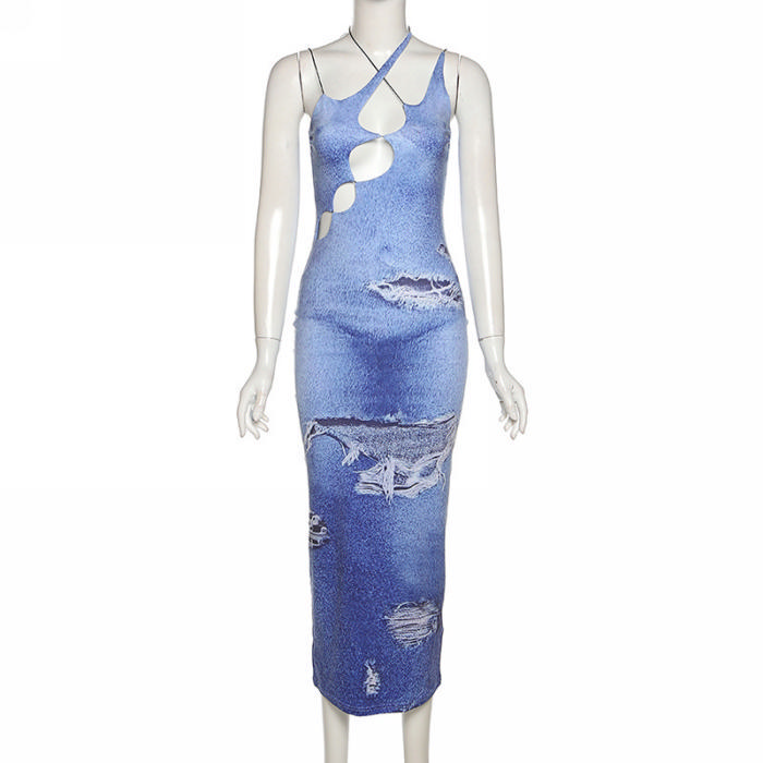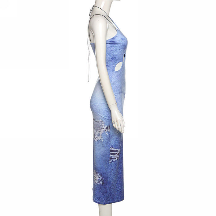(Real Image)2022 Styles Women Fashion Summer INS Styles Print Cut Out Maxi DressSKU: #CF48574-1