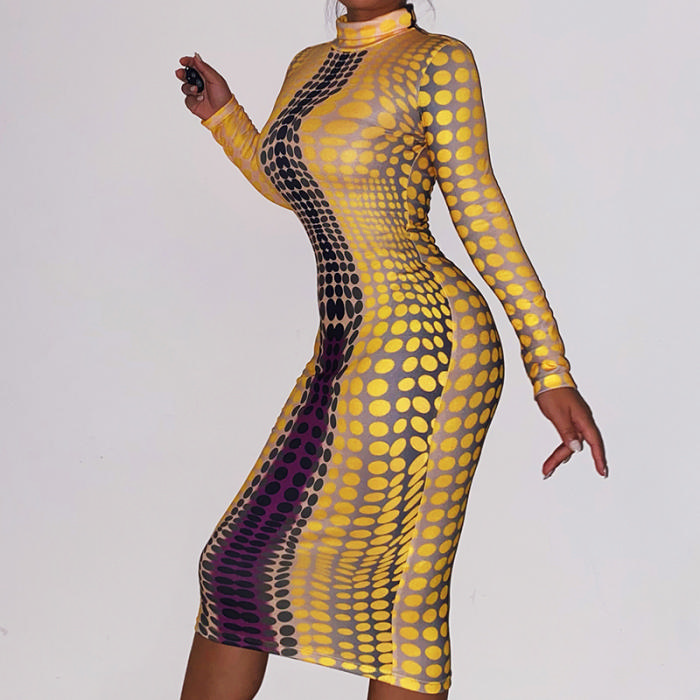 (Real Image)2022 Styles Women Fashion Summer INS Styles Print Long Sleeve Maxi DressSKU: #XF92455-1