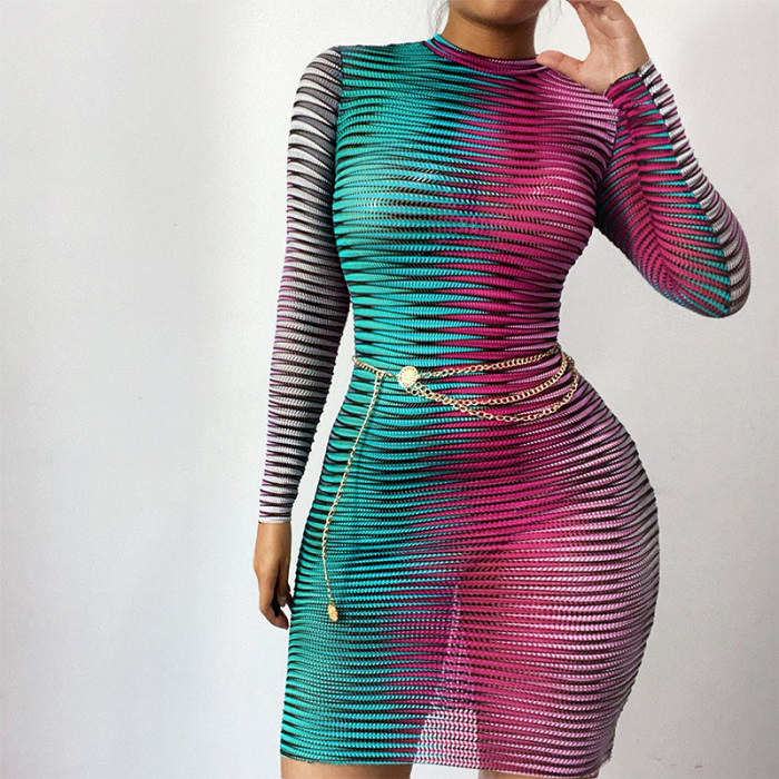 (Real Image)2022 Styles Women Fashion Summer INS Styles Print Long Sleeve Mini DressSKU: #XF92457-1