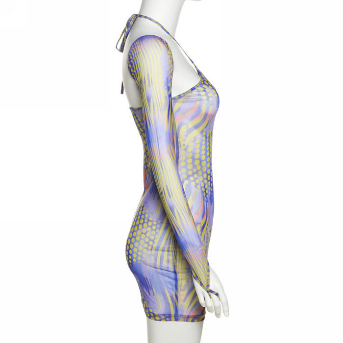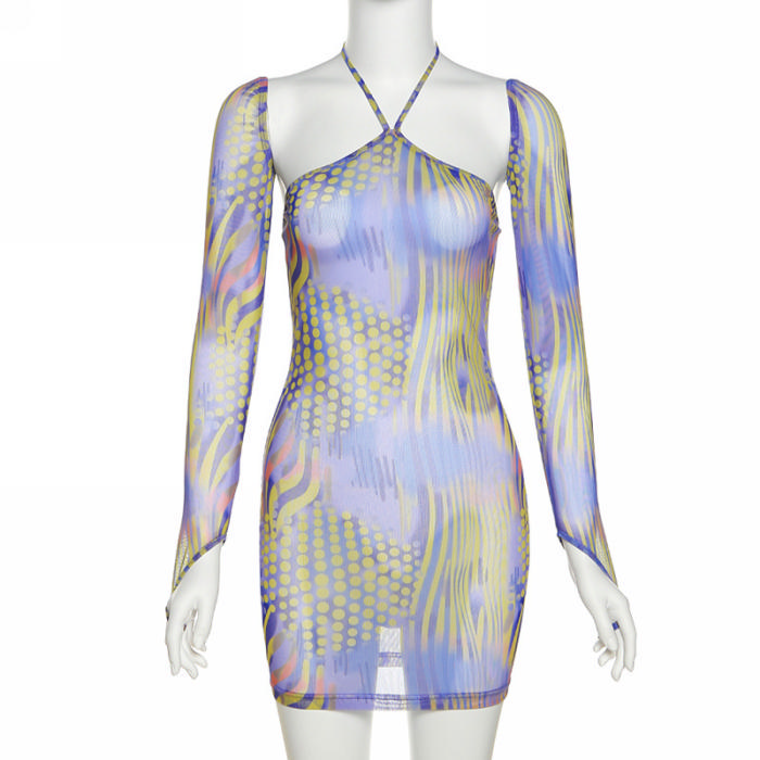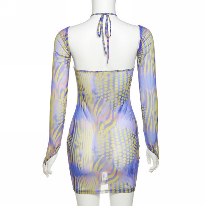 (Real Image)2022 Styles Women Fashion Summer INS Styles Print Long Sleeve Mini DressSKU: #CF48581-1
