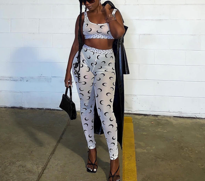 (Real Image)2022 Styles Women Fashion Summer INS Styles Print Mesh Two Pieces SuitSKU: #CF59039-1