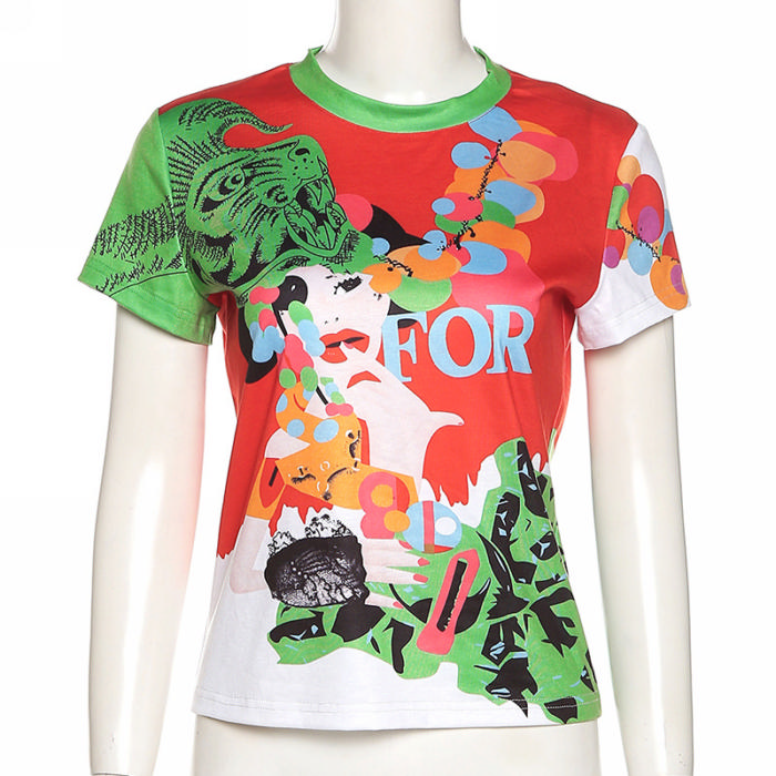 (Real Image)2022 Styles Women Fashion Summer INS Styles Print TeeSKU: #CF49588-1