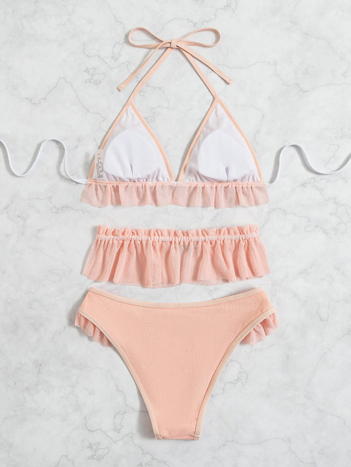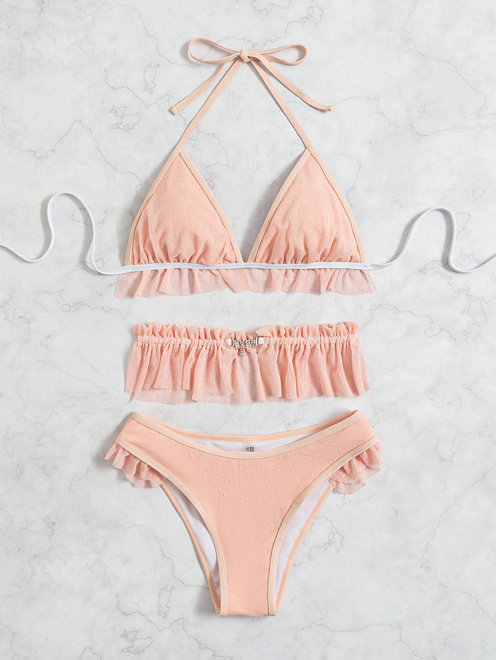 (Real Image)2022 Styles Women Fashion Summer INS Styles Ruffle Side 3 Pieces SuitSKU: #CF61021-1
