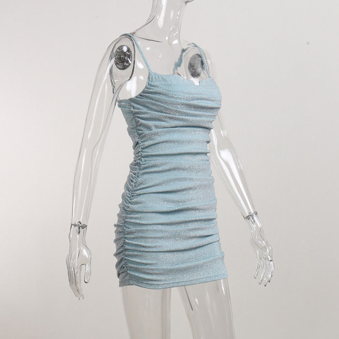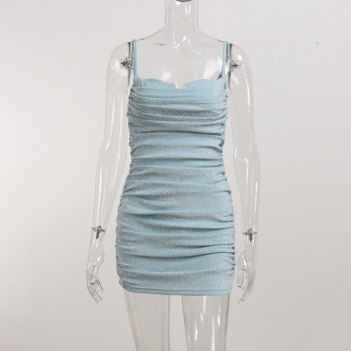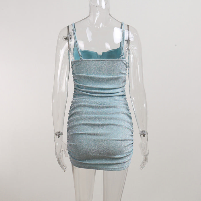 (Real Image)2022 Styles Women Fashion Summer INS Styles Ruffle Velvet Strap Mini DressSKU: #XF92477-1