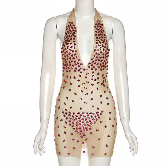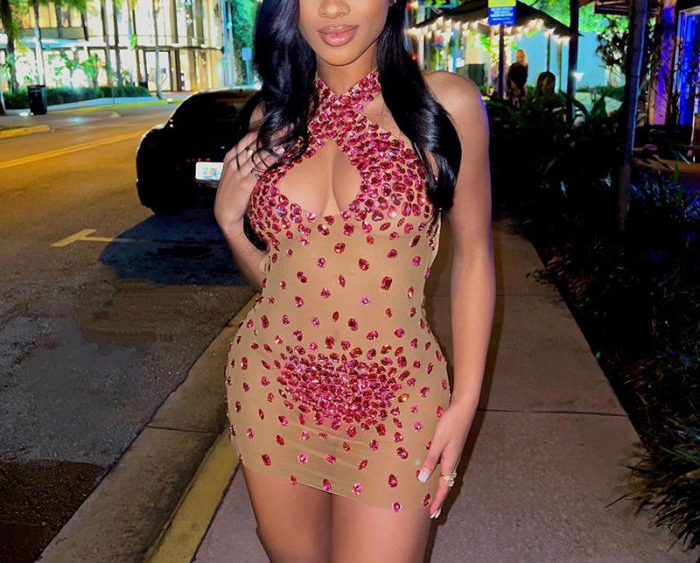 (Real Image)2022 Styles Women Fashion Summer INS Styles Sequin Halter Mini DressSKU: #CF48572-1