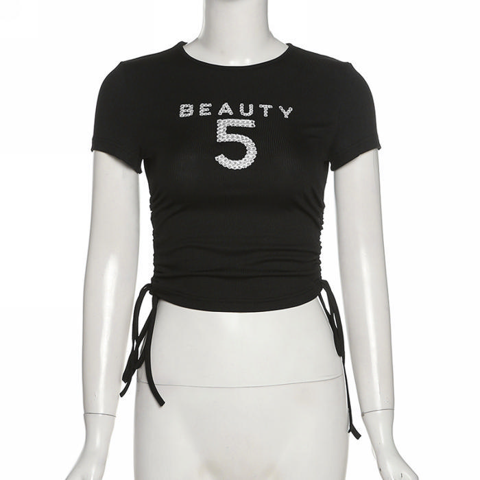 (Real Image)2022 Styles Women Fashion Summer INS Styles Sequin TeeSKU: #CF48573-1