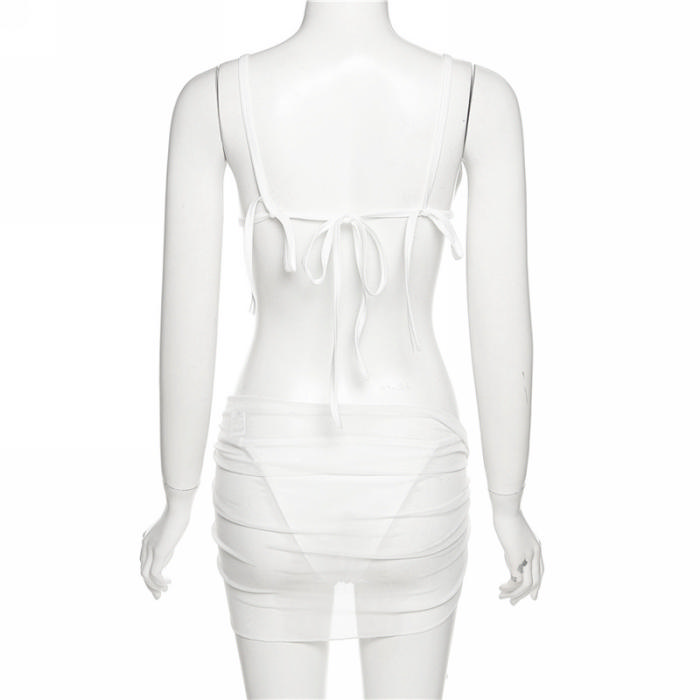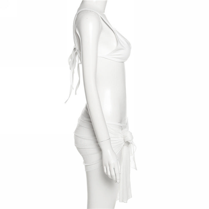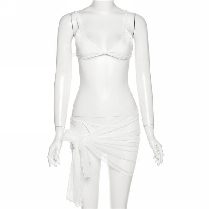 (Real Image)2022 Styles Women Fashion Summer INS Styles Solid Color 3 Piece Suit Bikini Set + SkirtsSKU: #CF49614-1