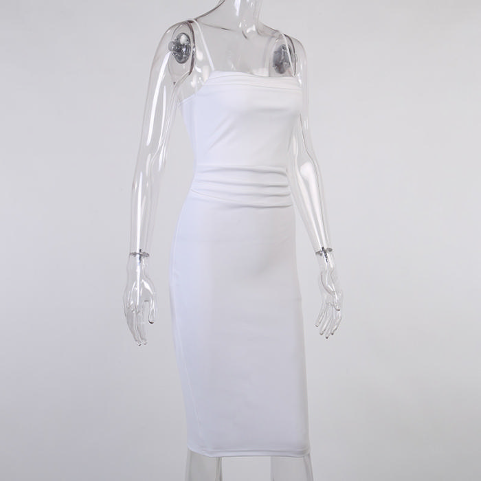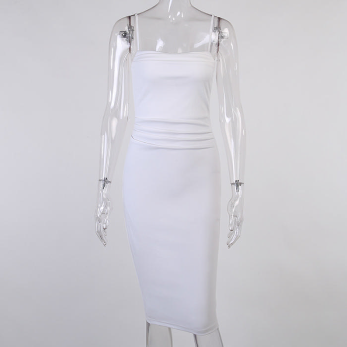 (Real Image)2022 Styles Women Fashion Summer INS Styles Solid Color Midi DressSKU: #XF92462-1