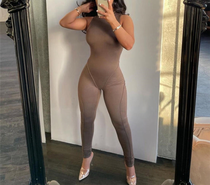 (Real Image)2022 Styles Women Fashion Summer INS Styles Solid Color Sleeveless JumpsuitSKU: #CF49538-2