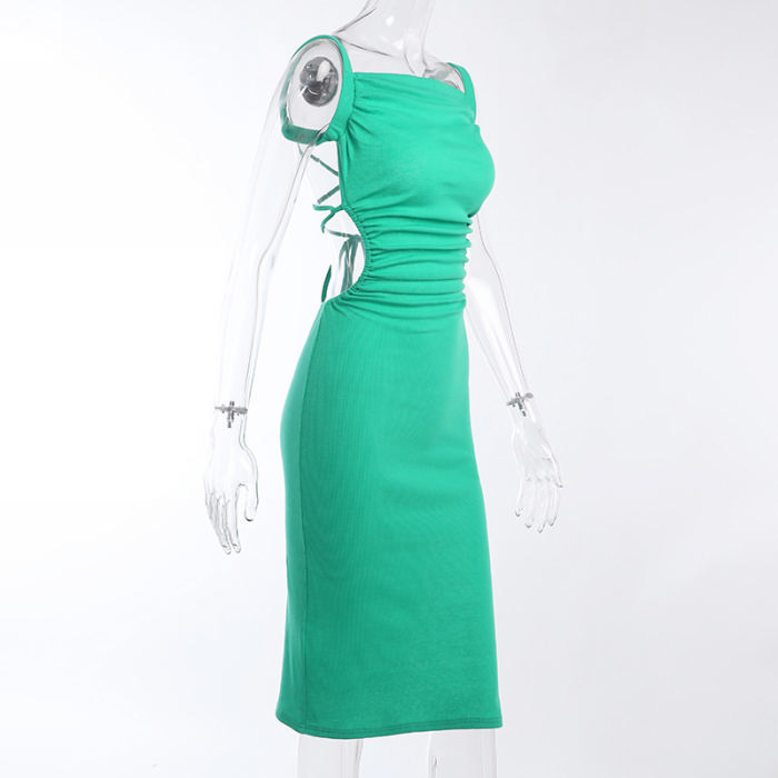 (Real Image)2022 Styles Women Fashion Summer INS Styles Strap Backless Double Split Midi DressSKU: #XF92456-1