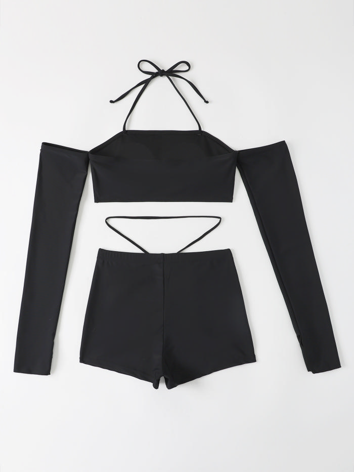 (Real Image)2022 Styles Women Fashion Summer Instagram Styles Black Tankinis SetSKU: #OEM5715-1