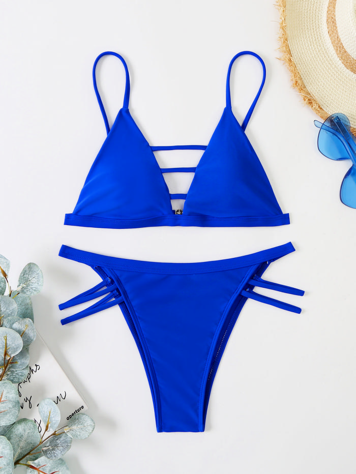 (Real Image)2022 Styles Women Fashion Summer Instagram Styles Blue Bandage Bikini SetSKU: #OU0114-1