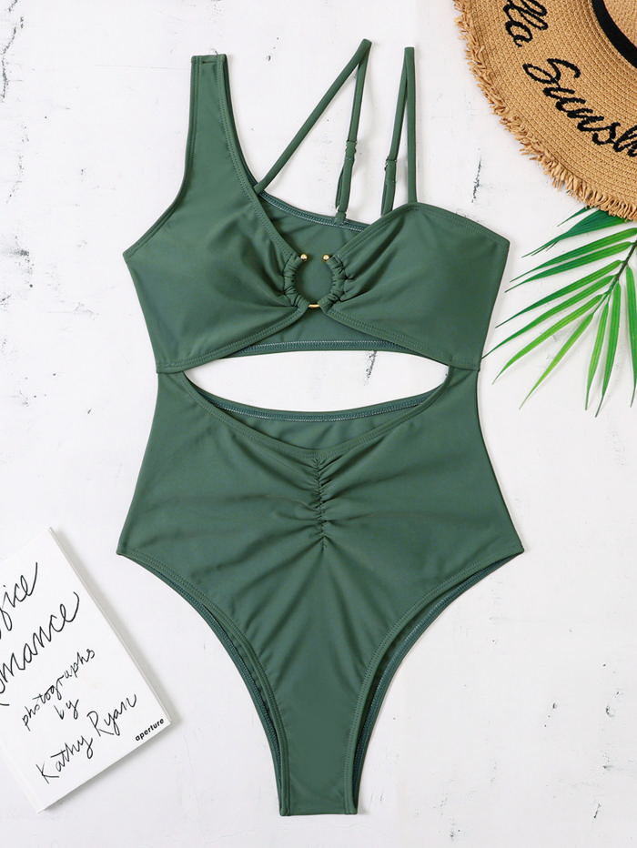 (Real Image)2022 Styles Women Fashion Summer Instagram Styles Green Cut Out One Piece SwimwearSKU: #OEM5711-1
