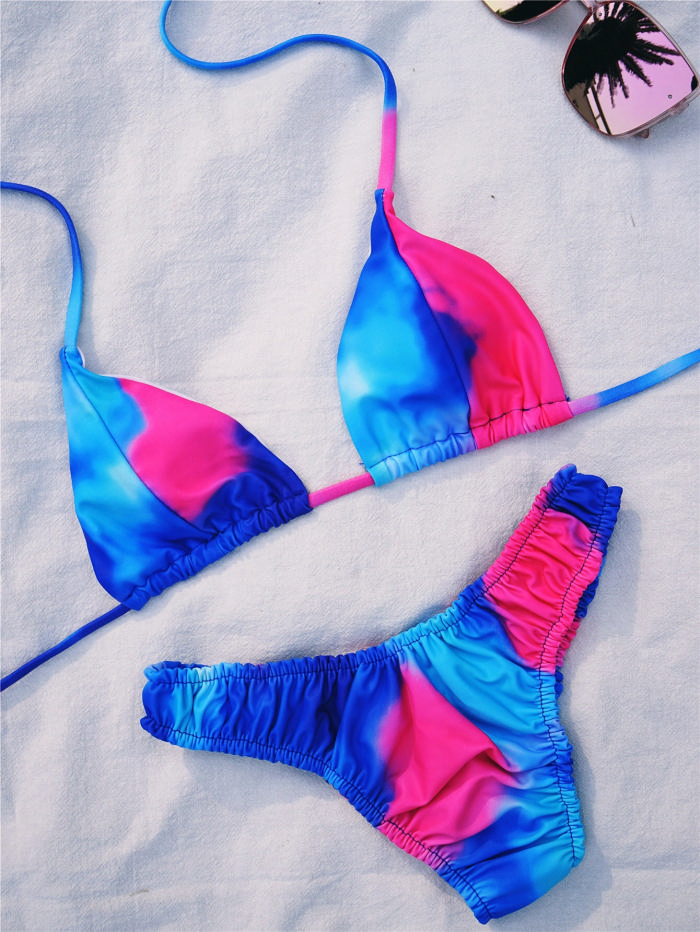 (Real Image)2022 Styles Women Fashion Summer Instagram Styles Print Blue Bikini SetSKU: #OU0115-1