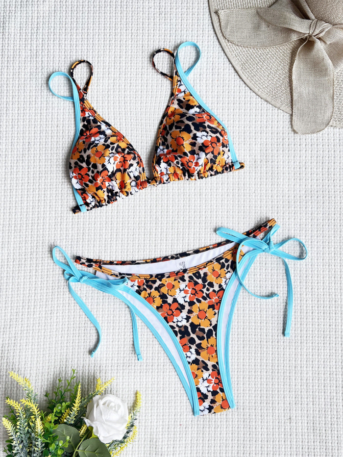 (Real Image)2022 Styles Women Fashion Summer Instagram Styles Print Chrysanthemum Bikini SetSKU: #CF60093-1