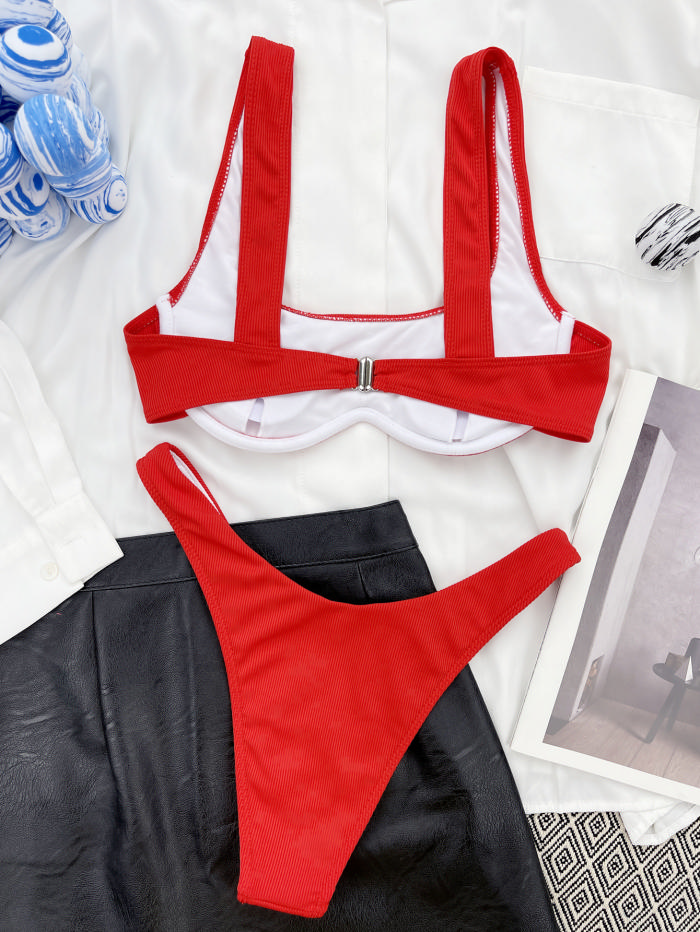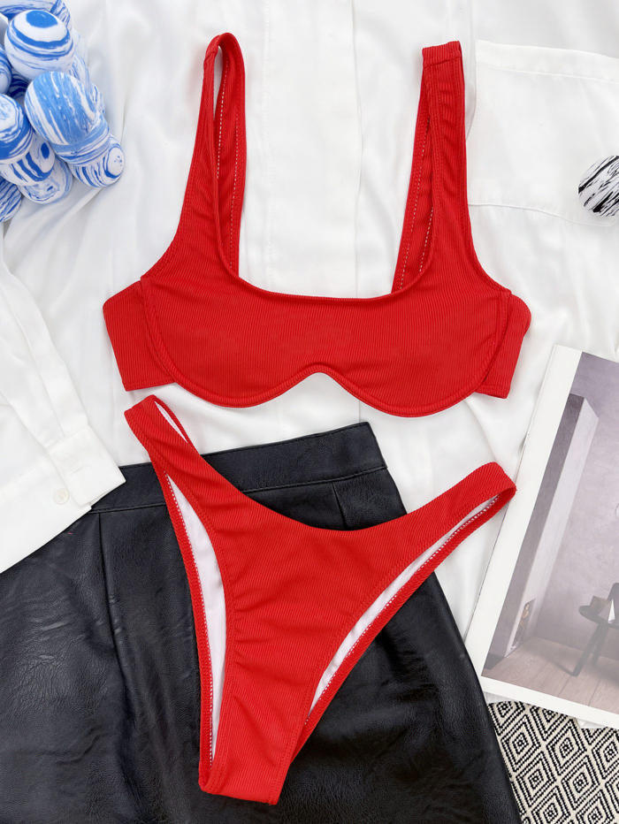 (Real Image)2022 Styles Women Fashion Summer Instagram Styles Solid Color Classic Bikini SetSKU: #OEM5702-3