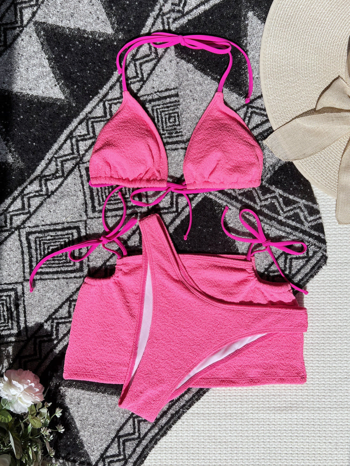(Real Image)2022 Styles Women Fashion Summer Instagram Styles Velvet Bikini Set+Skirts 3 Piece SwimsuitsSKU: #CF60090-1