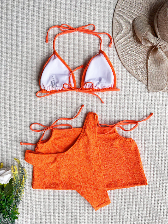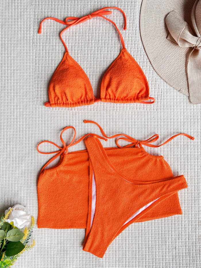 (Real Image)2022 Styles Women Fashion Summer Instagram Styles Velvet Bikini Set+Skirts 3 Piece SwimsuitsSKU: #CF60090-2