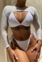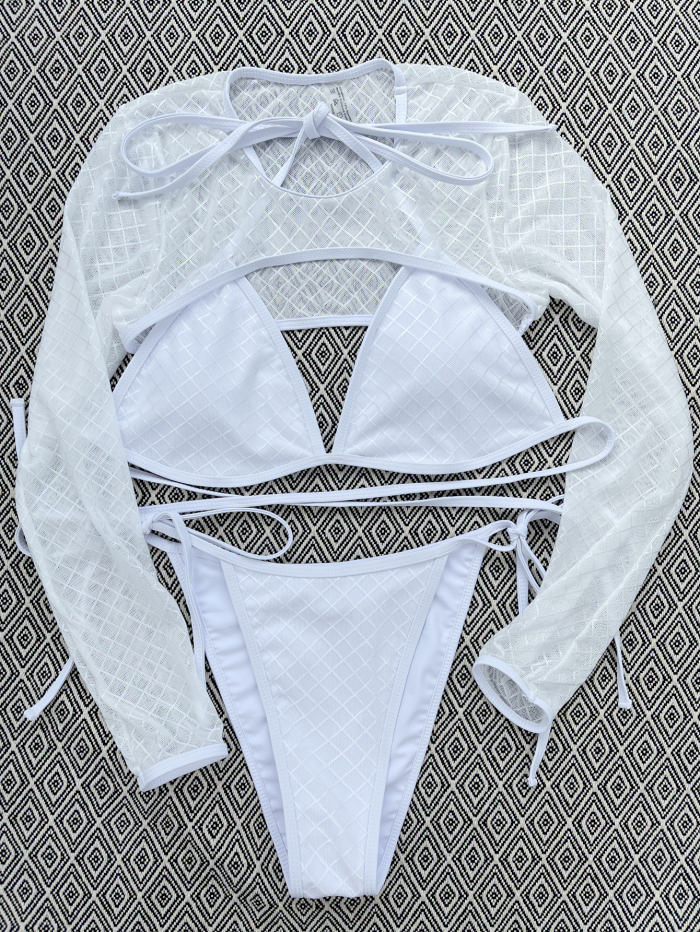 (Real Image)2022 Styles Women Fashion Summer Instagram Styles White Crop Tops+Bikini Set 3 Piece SwimsuitSKU: #OEM5707-1