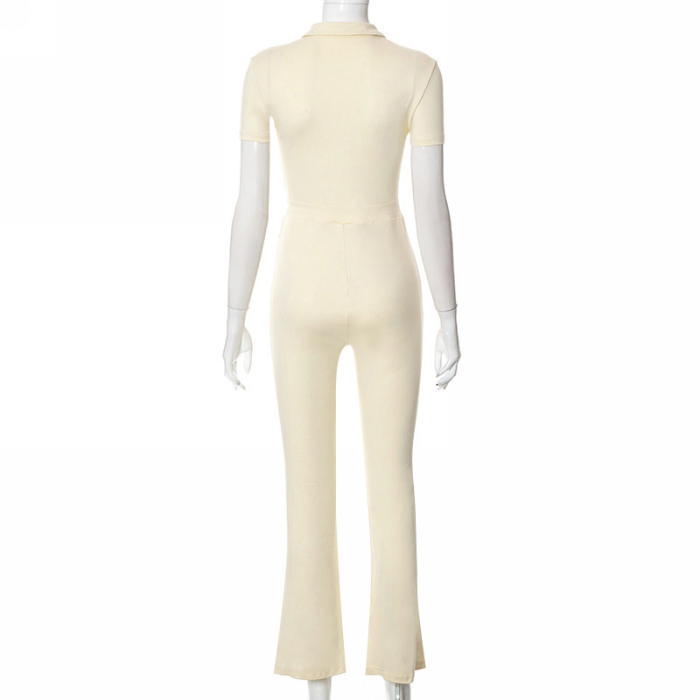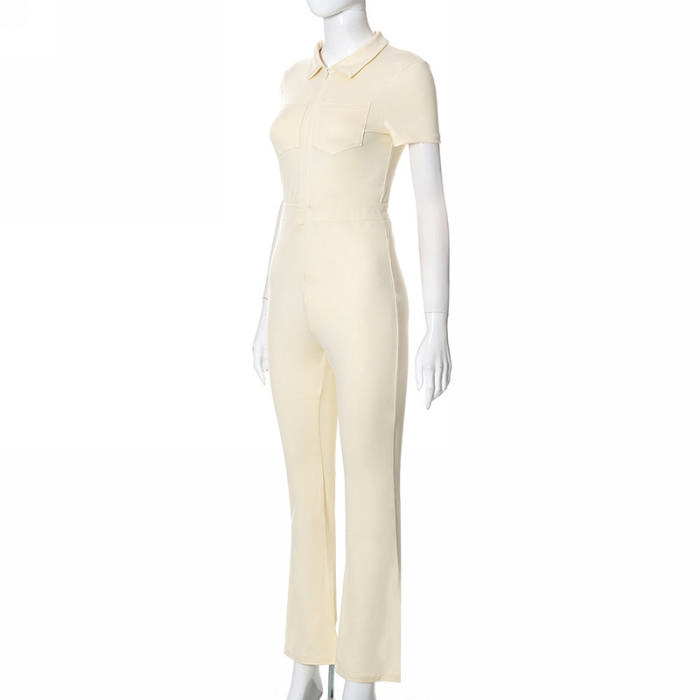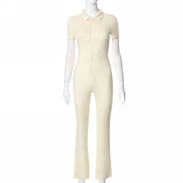 (Real Image)2022 Styles Women Fashion Summer TikTok&Instagram Styles Apricot Front Zipper JumpsuitSKU: #CF47277-1