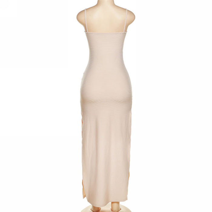 (Real Image)2022 Styles Women Fashion Summer TikTok&Instagram Styles Apricot Strap Maxi DressSKU: #CF47223-1