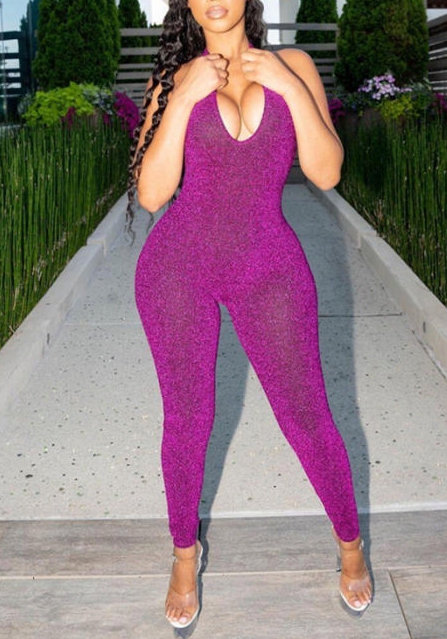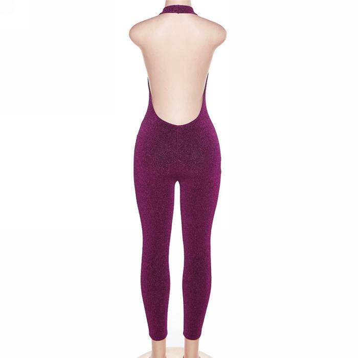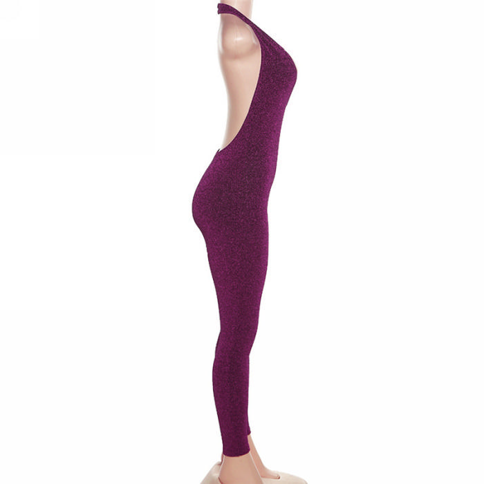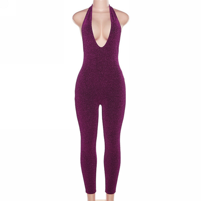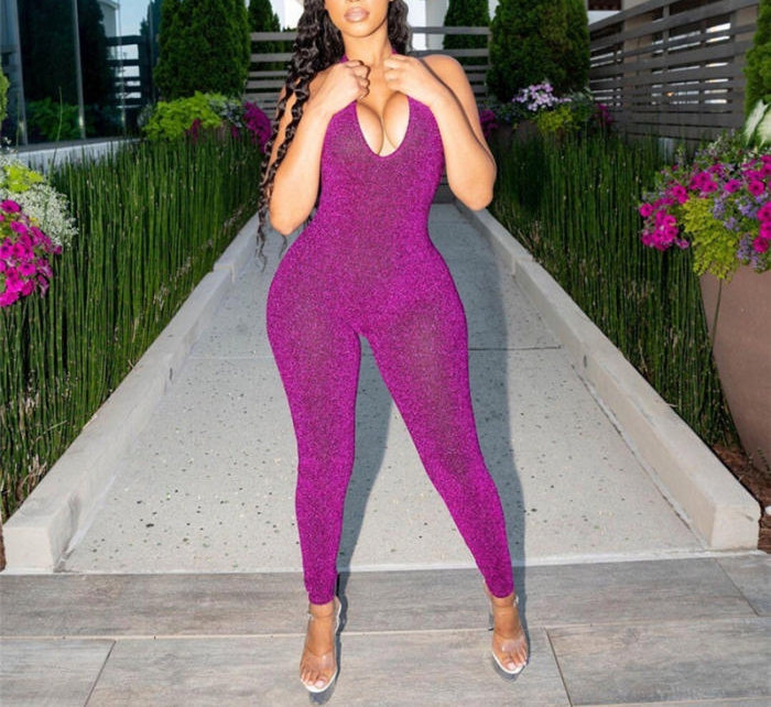 (Real Image)2022 Styles Women Fashion Summer TikTok&Instagram Styles Backless Velvet Halter JumpsuitSKU: #CF49920-1