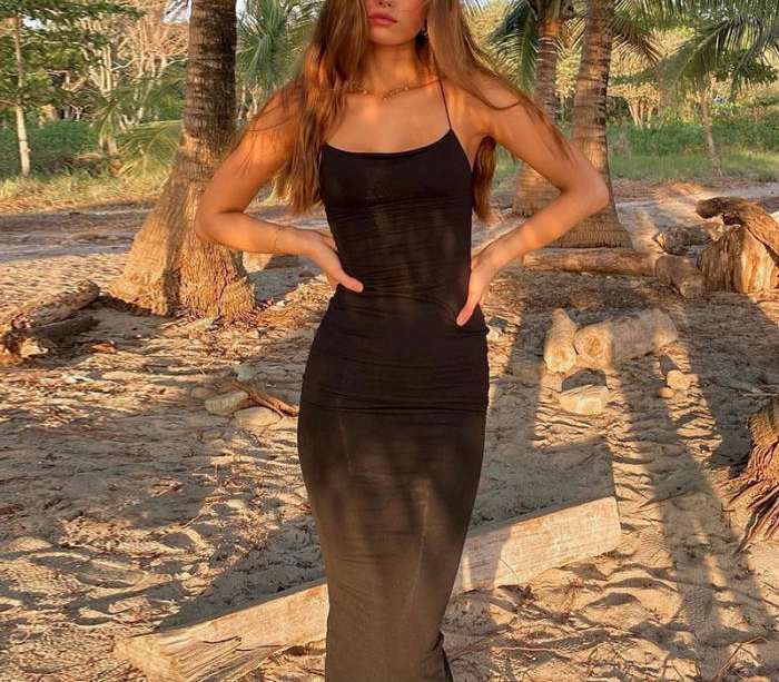 (Real Image)2022 Styles Women Fashion Summer TikTok&Instagram Styles Black Backless Maxi DressSKU: #CF22747-1