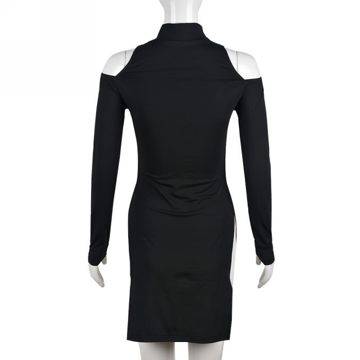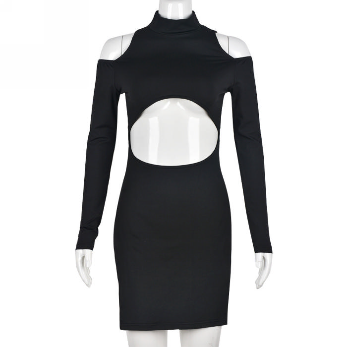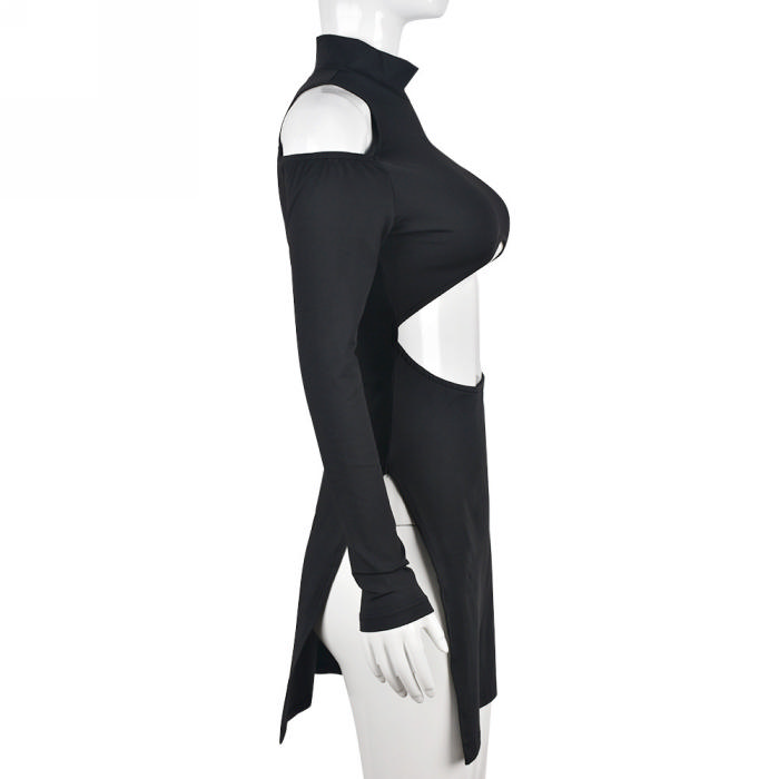 (Real Image)2022 Styles Women Fashion Summer TikTok&Instagram Styles Black Cut Out Club Long Sleeve DressSKU: #CF59299-1