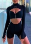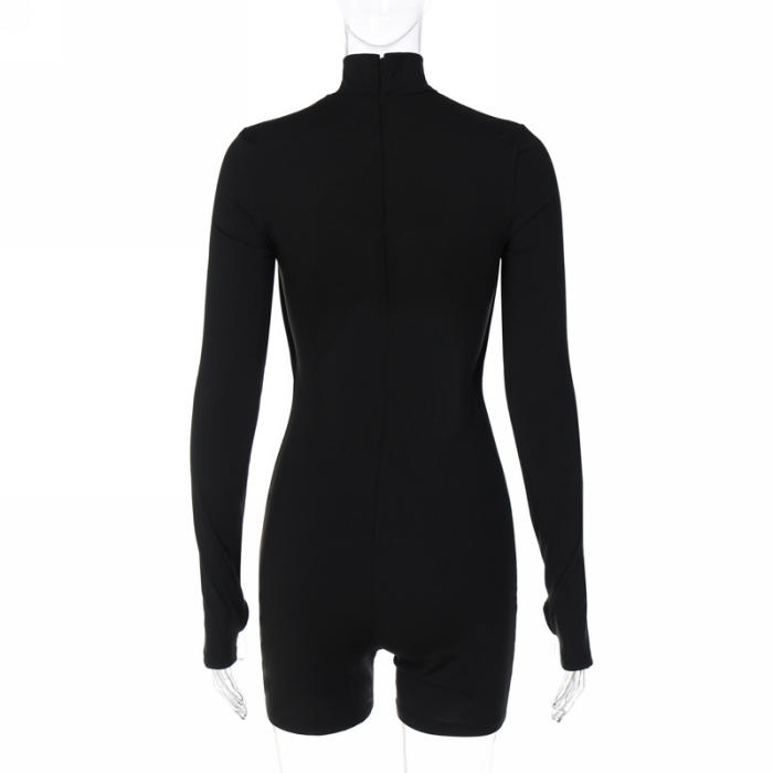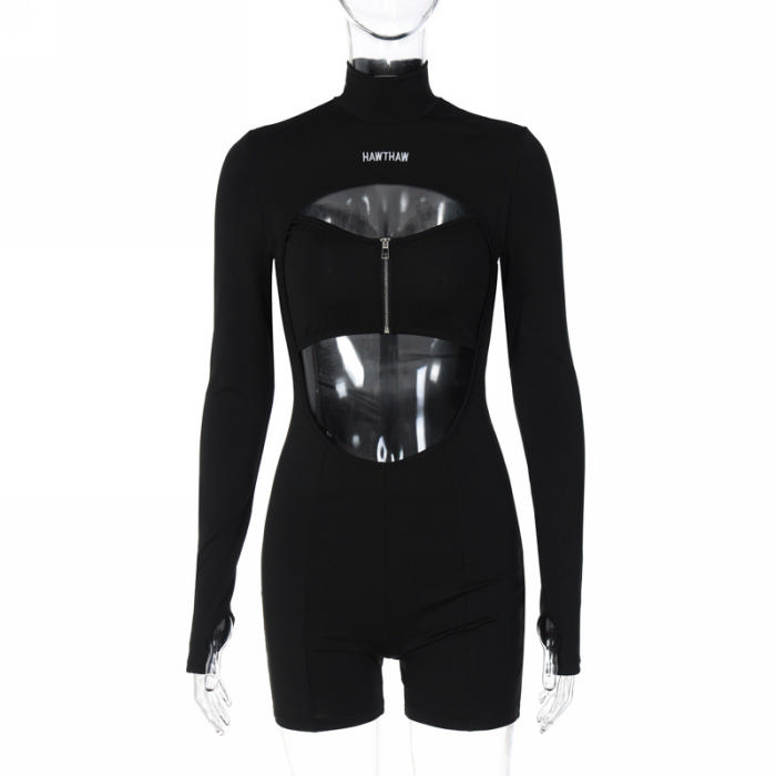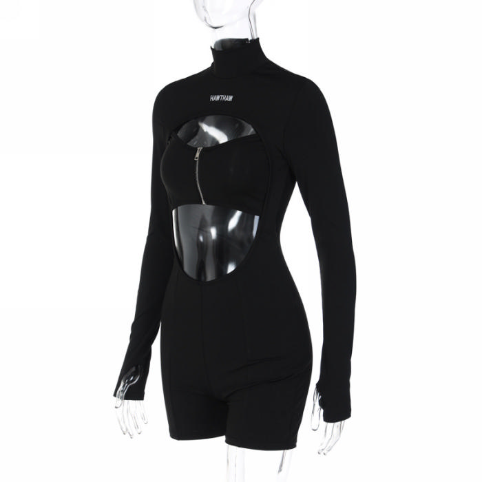 (Real Image)2022 Styles Women Fashion Summer TikTok&Instagram Styles Black Cut Out Front Zipper RomperSKU: #CF22815-1