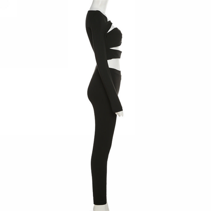 (Real Image)2022 Styles Women Fashion Summer TikTok&Instagram Styles Black Cut Out JumpsuitSKU: #CF77055-1