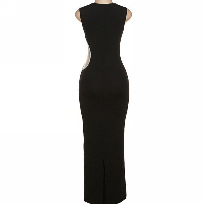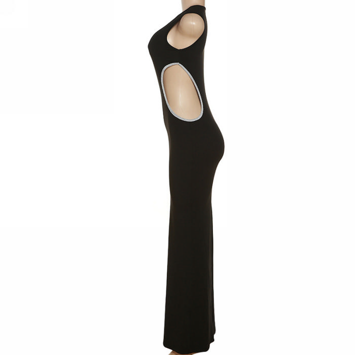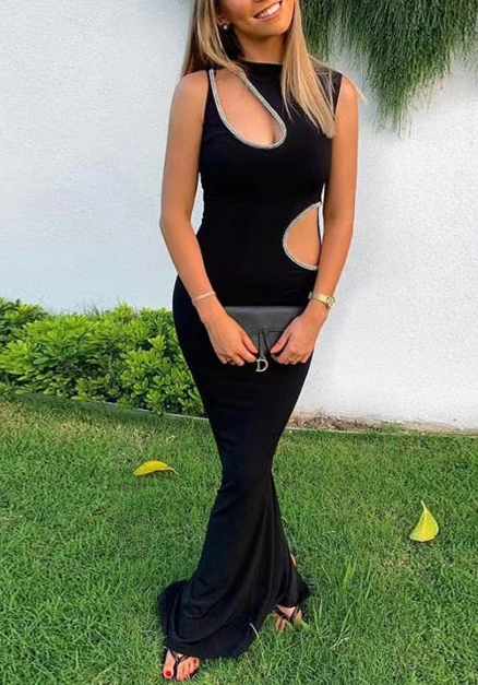 (Real Image)2022 Styles Women Fashion Summer TikTok&Instagram Styles Black Cut Out Maxi DressSKU: #CF47197-1