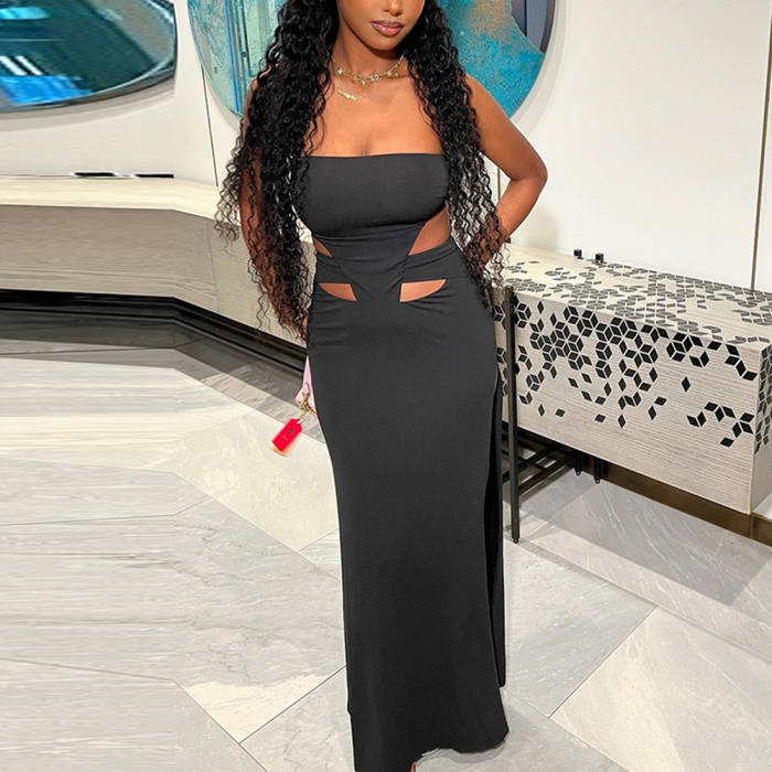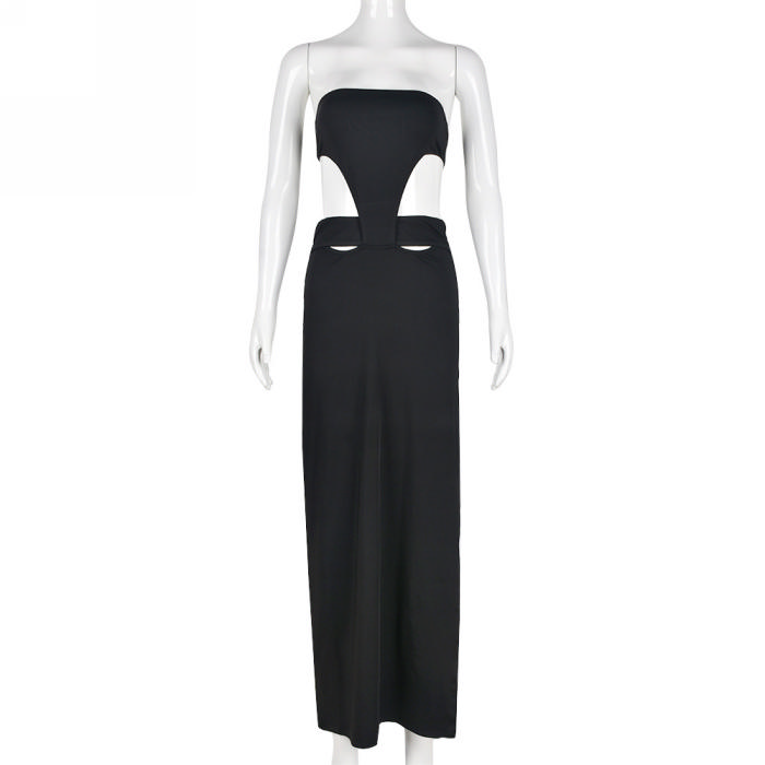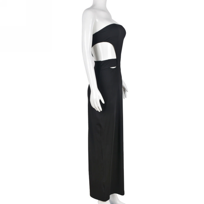 (Real Image)2022 Styles Women Fashion Summer TikTok&Instagram Styles Black Cut Out Maxi DressSKU: #CF59305-1