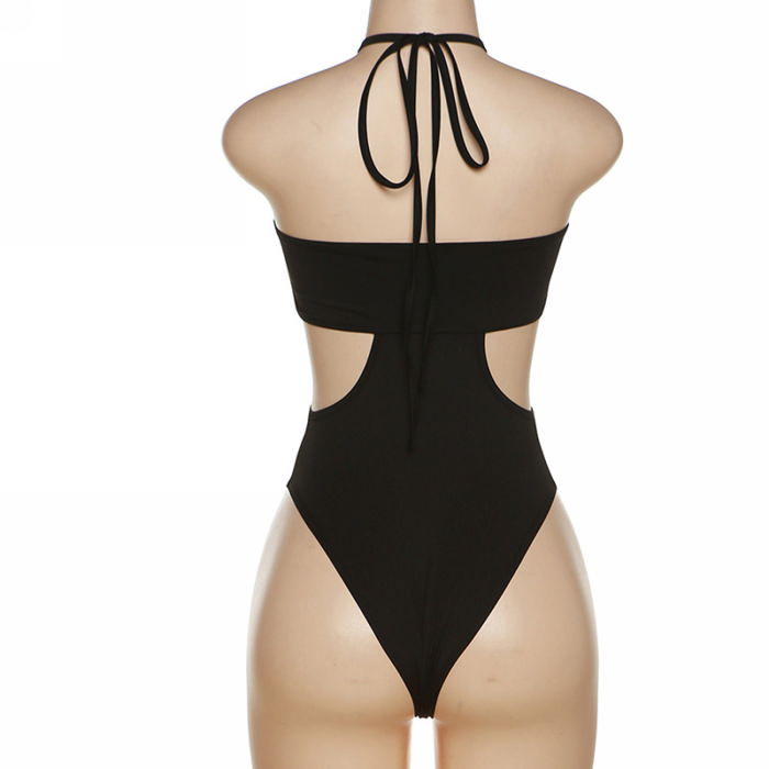 (Real Image)2022 Styles Women Fashion Summer TikTok&Instagram Styles Black Front Flower BodysuitSKU: #CF47204-1