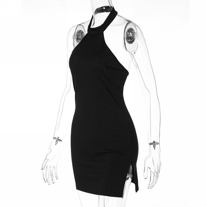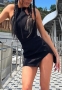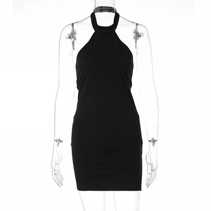 (Real Image)2022 Styles Women Fashion Summer TikTok&Instagram Styles Black Halter Backless Mini DressSKU: #CF22739-1