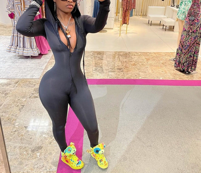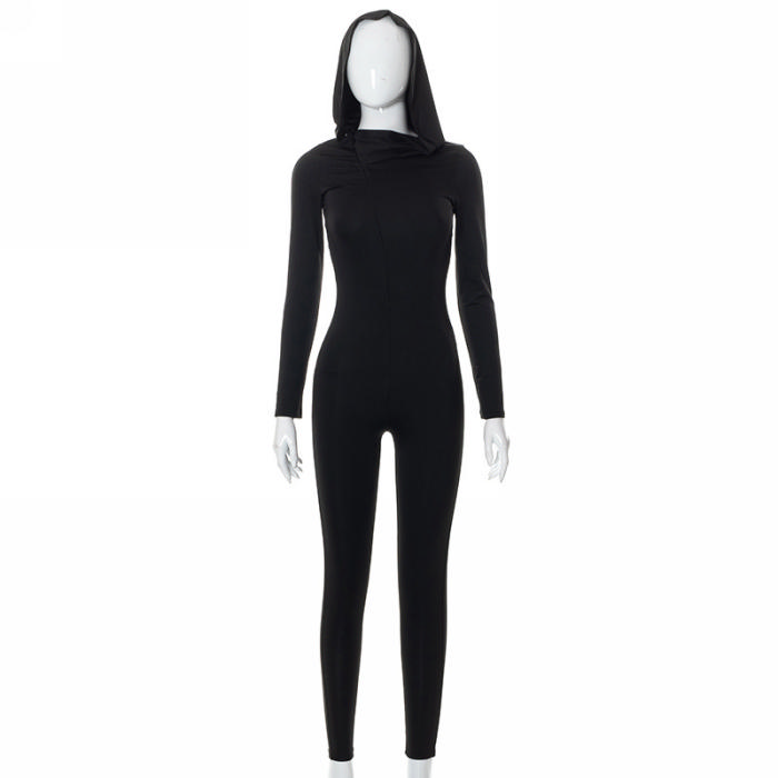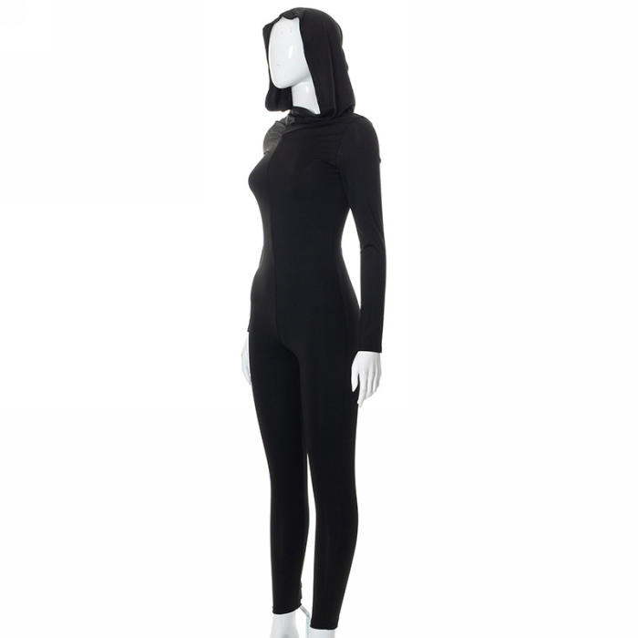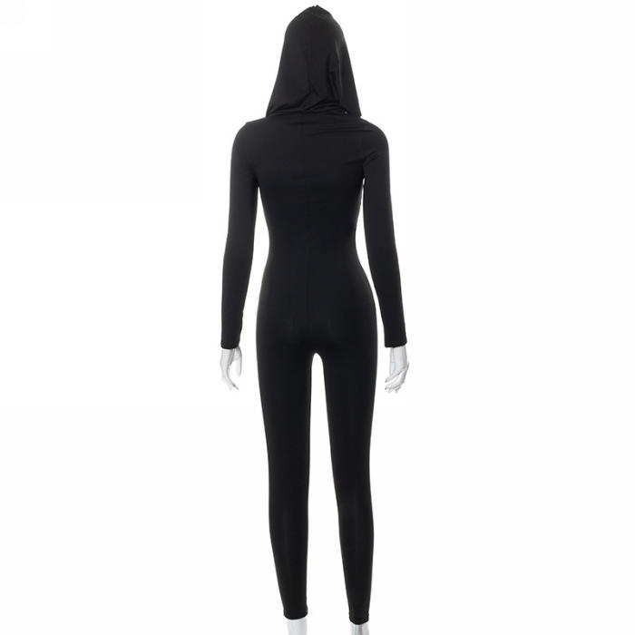 (Real Image)2022 Styles Women Fashion Summer TikTok&Instagram Styles Black Hoodie JumpsuitSKU: #CF47149-1