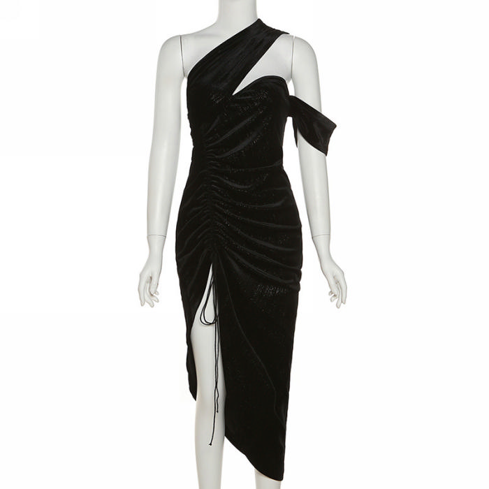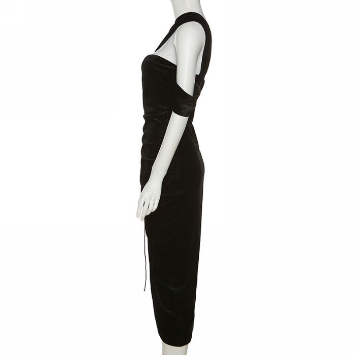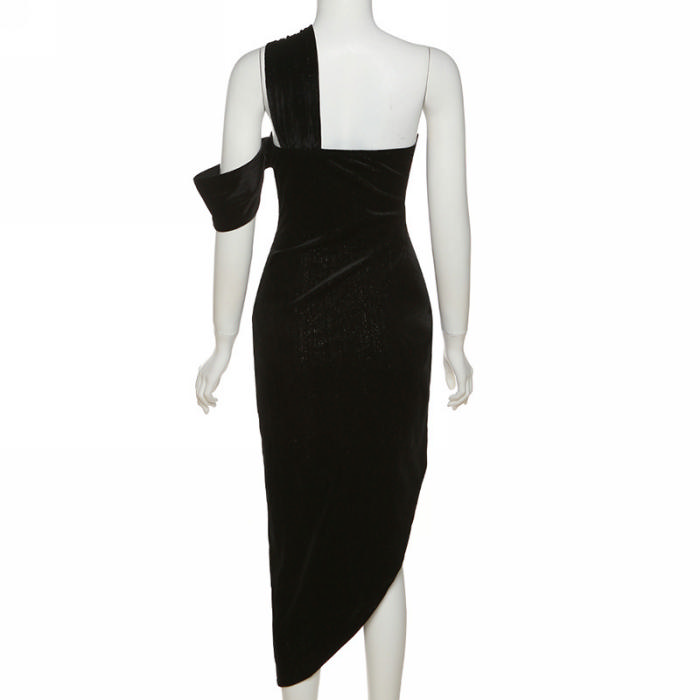 (Real Image)2022 Styles Women Fashion Summer TikTok&Instagram Styles Black Irregular High Split Club DressSKU: #CF47203-1