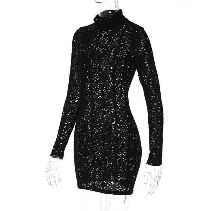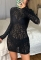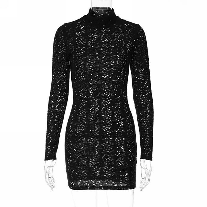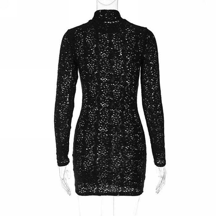 (Real Image)2022 Styles Women Fashion Summer TikTok&Instagram Styles Black Lace Long Sleeve Mini DressSKU: #CF22822-1