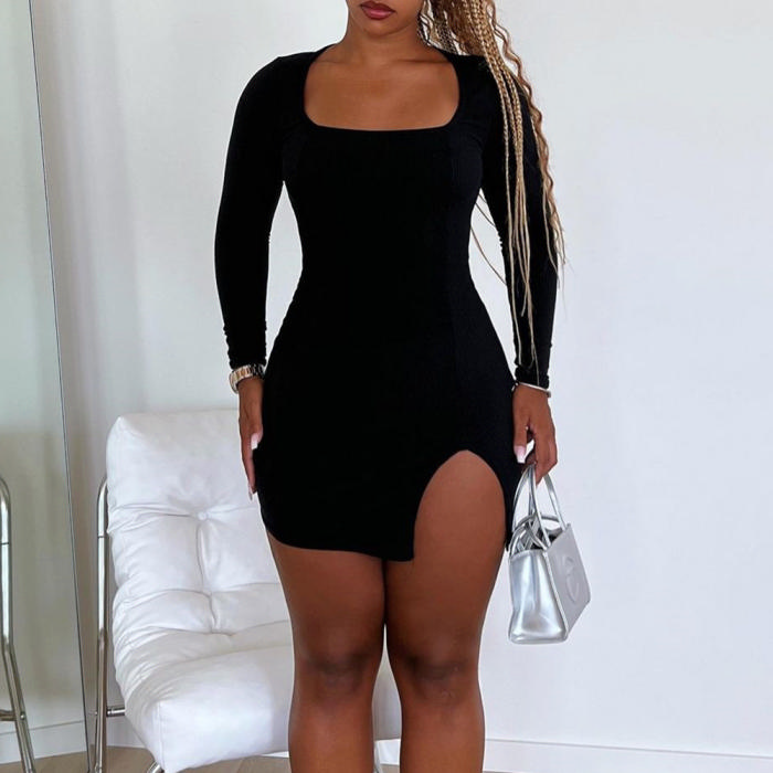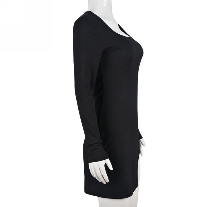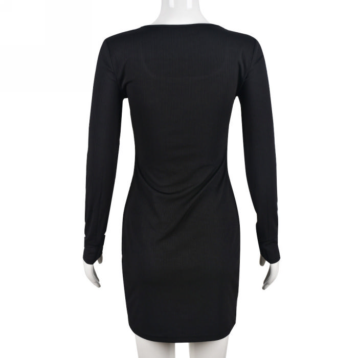 (Real Image)2022 Styles Women Fashion Summer TikTok&Instagram Styles Black Long Sleeve Mini DressSKU: #CF59319-1