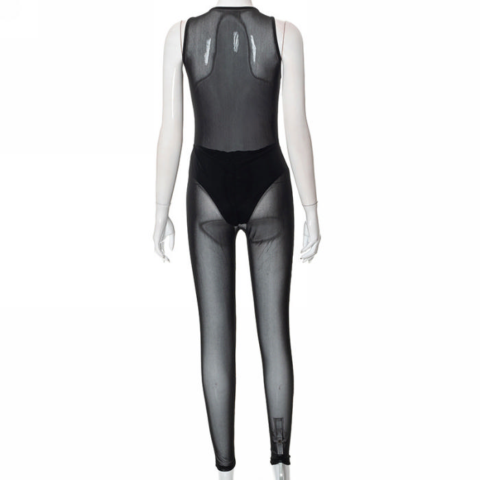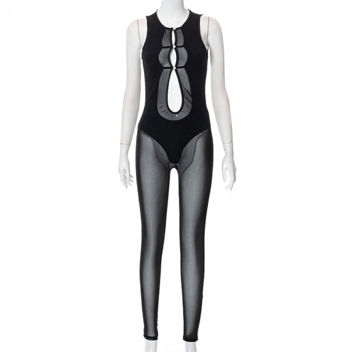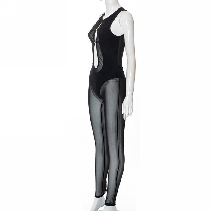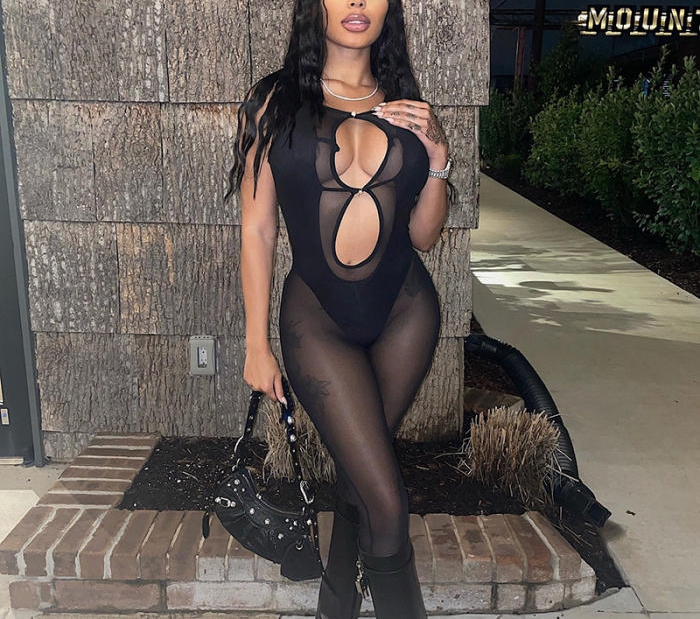 (Real Image)2022 Styles Women Fashion Summer TikTok&Instagram Styles Black Mesh Cut Out JumpsuitSKU: #CF47159-1
