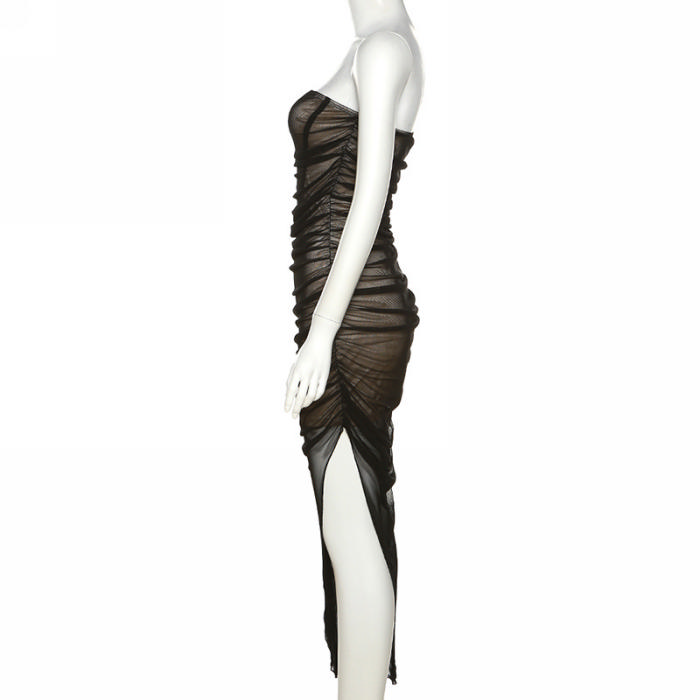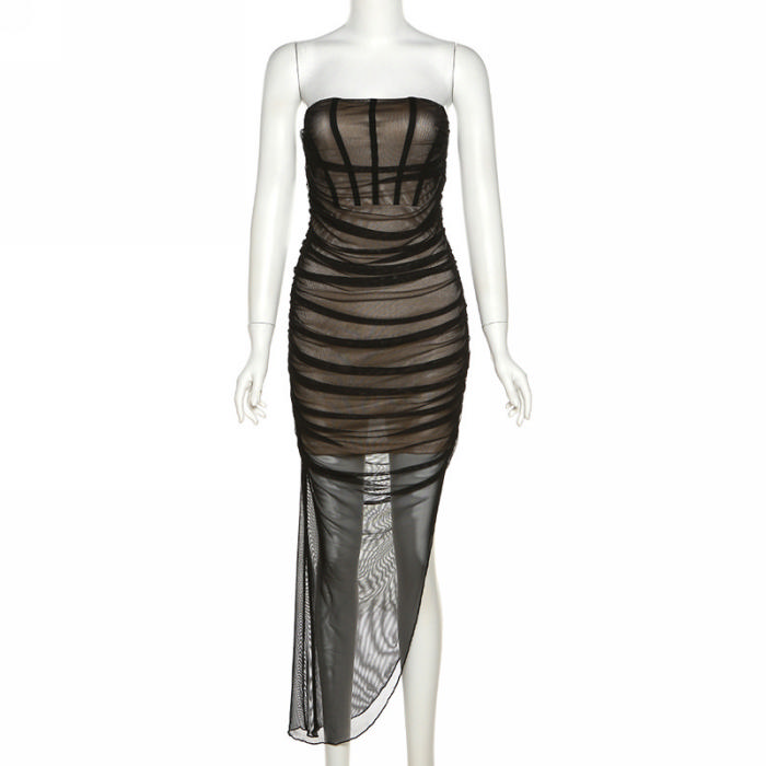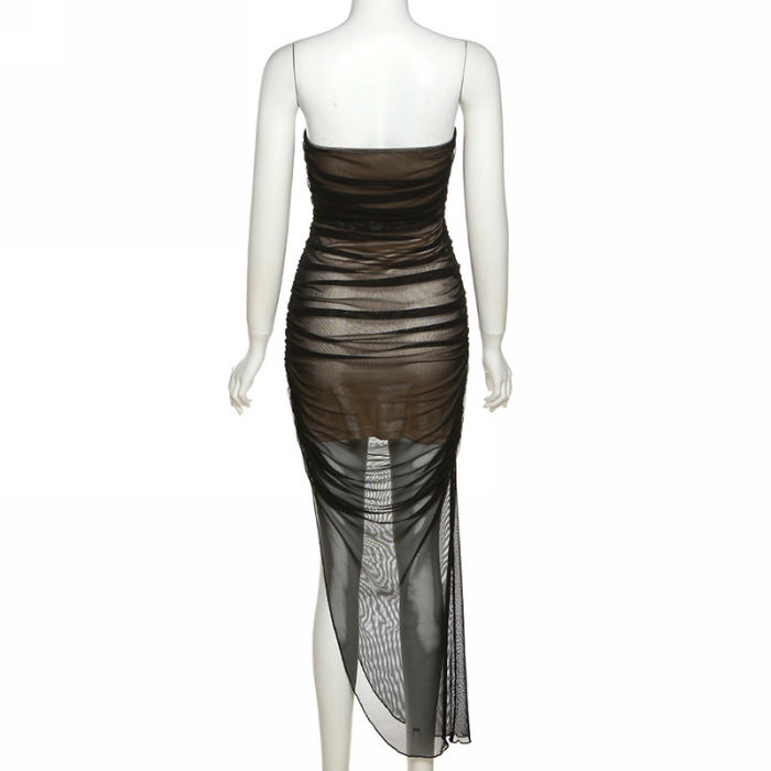 (Real Image)2022 Styles Women Fashion Summer TikTok&Instagram Styles Black Mesh Irregular Midi DressSKU: #CF47211-1