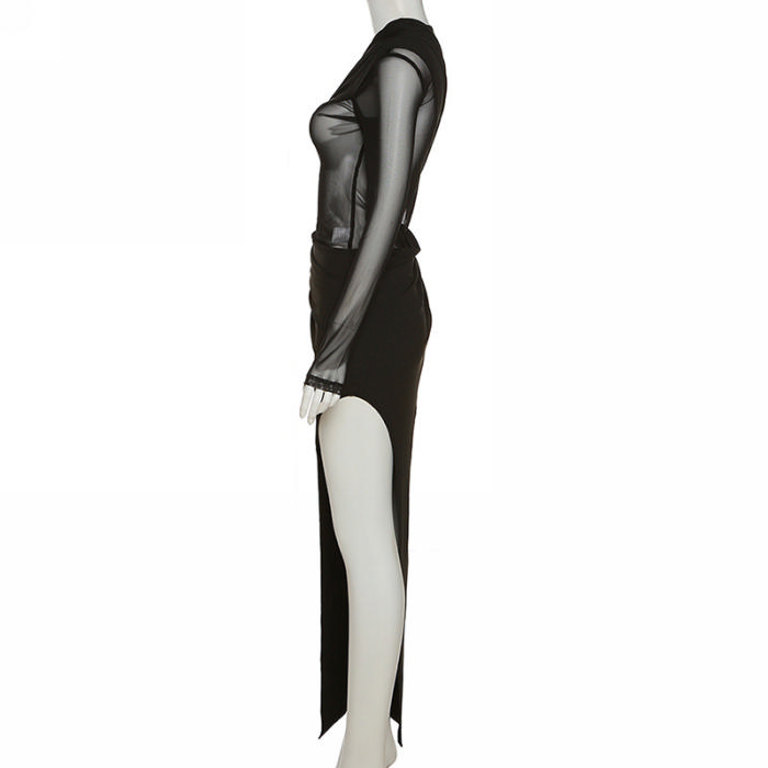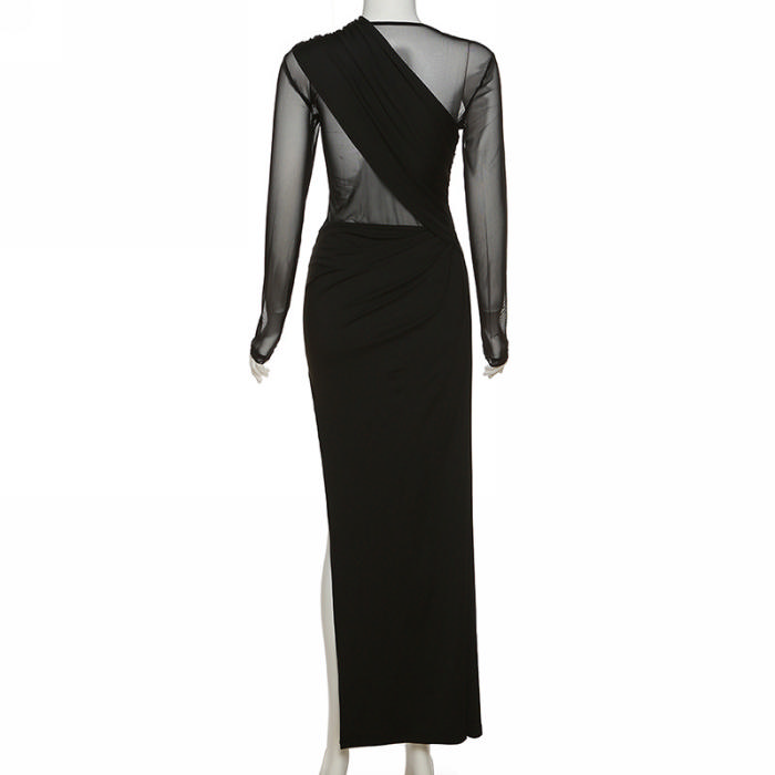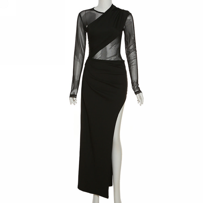 (Real Image)2022 Styles Women Fashion Summer TikTok&Instagram Styles Black Mesh Long Sleeve Maxi DressSKU: #CF48797-1